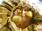 • Luwombo (meat or chicken cooked in banana leaves) - Served with bananas(matooke)