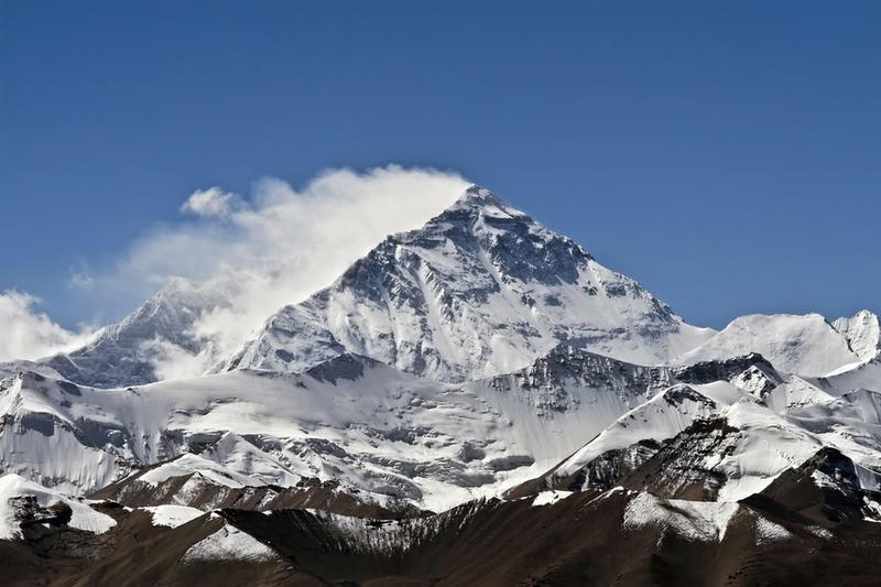 Denali has a summit elevation of 20,237 feet (6,168 m) above sea level, making it the highest peak in North America and the northernmost mountain above 6,000 meters elevation in the world. Measured from base to peak at some 18,000 ft (5,500 m), it is also the largest of any mountain entirely above sea level. Denali rises from a sloping plain with elevations from 1,000 to 3,000 ft (300 to 910 m), for a base-to-peak height of 17,000 to 19,000 ft (5,000 to 6,000 m). (Mount Everest, on the other hand, rises from the Tibetan Plateau, at a much higher base elevation. Base elevations for Everest range from 13,800 ft (4,200 m) on the south side to 17,100 ft (5,200 m) on the Tibetan Plateau, for a base-to-peak height in the range of 12,000 to 15,300 ft (3,700 to 4,700 m). Denali's base-to-peak height is little more than half the 33,500 ft (10,200 m) of the volcano Mauna Kea, which lies mostly under water.)
