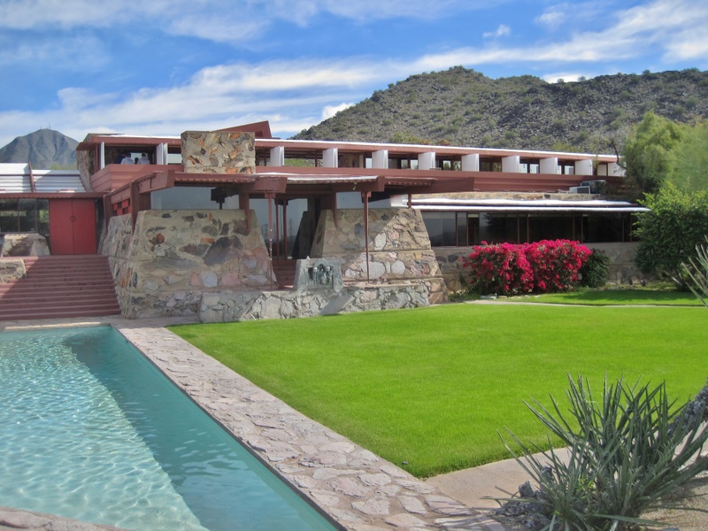 In 1927, financial problems caused a foreclosure on the building by the Bank of Wisconsin. Wright was able to reacquire the building with the financial help of friends and was able to reoccupy it as of November, 1928. Taliesin III was Wright's home for the rest of his life, although he began to winter at Taliesin West in Scottsdale, Arizona upon its completion in 1937. Many of Wright's acclaimed buildings were designed here, including Fallingwater, "Jacobs I" (the first Wright-designed residence of Herbert and Katherine Jacobs), the Johnson Wax Headquarters, and the Solomon R. Guggenheim Museum. Wright was also an avid collector of Asian art and used Taliesin as a storehouse and private museum.
